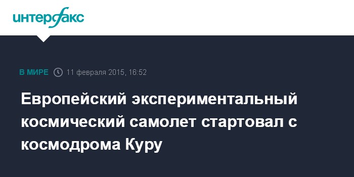 Москва. 11 февраля. INTERFAX.RU - Ракета-носитель "Вега" с европейским экспериментальным бескрылым космическим самолетом IXV (The Intermediate eXperimental Vehicle) стартовала в среду с космодрома Куру во французской Гвиане.