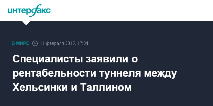 Москва. 11 февраля. INTERFAX.RU - Железнодорожный туннель между Хельсинки и Таллином может быть рентабельным, считают специалисты ряда международных предприятий и организаций, занимающиеся планированием и развитием транспорта.