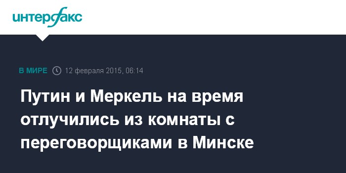 Москва. 12 февраля. INTERFAX.RU - После девяти часов переговоров некоторые из лидеров "нормандской четверки" на время покинули комнату, где проходит встреча.
