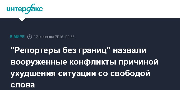Москва. 12 февраля. INTERFAX.RU -Ситуация с обеспечением свободы слова в мире резко ухудшилась, говорится в опубликованном в четверг ежегодном докладе организации "Репортеры без границ".