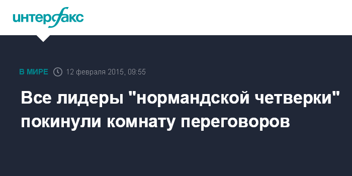 Москва. 12 февраля. INTERFAX.RU - Лидеры "нормандской четверки" покинули комнату переговоров, передает корреспондент "Интерфакса".