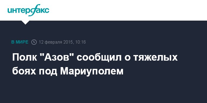 Москва. 12 февраля. INTERFAX.RU - По состоянию на 8:00 четверга идут тяжелые бои на линии Широкино-Саханка (северо-восточнее Мариуполя), сообщает пресс-служба украинского полка особого назначения "Азов".