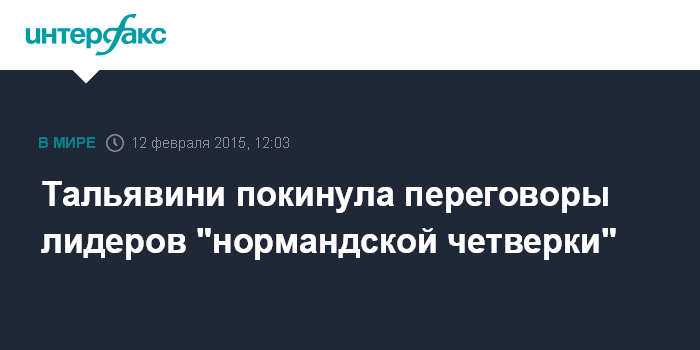 Москва. 12 февраля. INTERFAX.RU - Спецпредставитель ОБСЕ, участник контактной группы Хайди Тальявини покинула проходящие в Минске переговоры лидеров "нормандской четверки" по урегулированию ситуации на юго-востоке Украины.