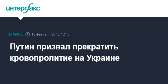 Москва. 12 февраля. INTERFAX.RU - Президент РФ Владимир Путин призвал стороны украинского конфликта к скорейшему прекращению кровопролития.