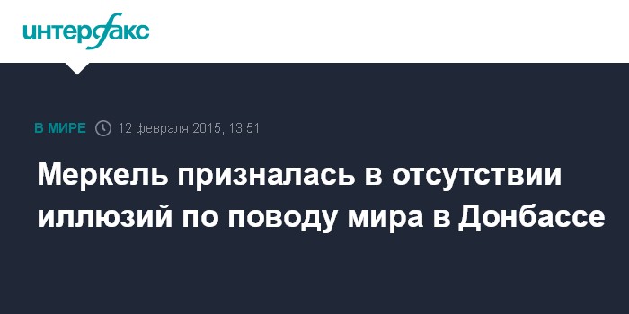 По ее словам, минские договоренности дают надежду на мирное решение конфликта. Однако Меркель добавила, что чрезмерных иллюзий по этому поводу не испытывает.