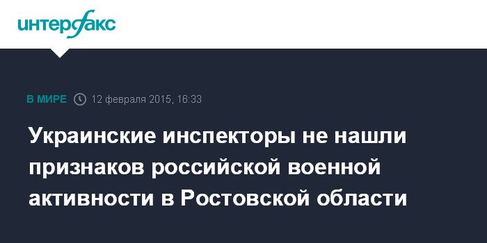 "12 февраля украинская группа специалистов завершила инспекцию в Ростовской области. По ее итогам представители Украины отметили, что не наблюдали военной деятельности Вооруженных Сил Российской Федерации в выбранном для инспекции районе, а также указали на точное соблюдение положений Венского документа российскими сопровождающими лицами", - заявил Рыжков.