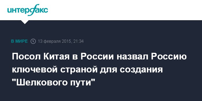 Со своей стороны посол КНР в России напомнил, что полях зимних Олимпийских игр в Сочи главы Китая и России обсуждали этот вопрос. Председатель Си Цзиньпин заявил, что Китай, продвигая идею создания "Экономического Пояса Шелкового пути", уделяет большое внимание мнению России. Необходимо осуществить объединение политики Евразийского процесса и активной интеграции в Азиатско-Тихоокеанском регионе на основе концепций Китая и руководства со стороны России, отметил он.