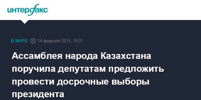 Москва. 14 февраля. INTERFAX.RU - Участники заседания совета Ассамблеи народа Казахстана (АНК) в субботу в Астане выразили единогласную поддержку инициативе проведения досрочных выборов президента Казахстана.