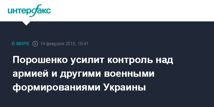 Москва. 14 февраля. INTERFAX.RU - Президент Петр Порошенко подписал указ "Об усилении контроля над деятельностью Вооруженных сил Украины и других воинских формирований", а также утвердил положение, которым определяется порядок осуществления контроля президента в этой сфере.