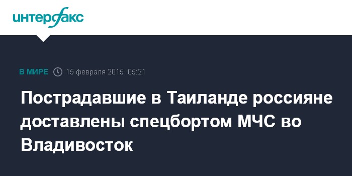 Пострадавшие в Таиланде россияне доставлены спецбортом МЧС во Владивосток