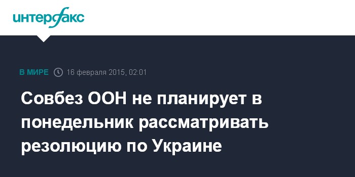 Москва. 16 февраля. INTERFAX.RU - На заседании Совета Безопасности ООН в ночь на понедельник не планируется рассматривать резолюцию по ситуации на Украине.