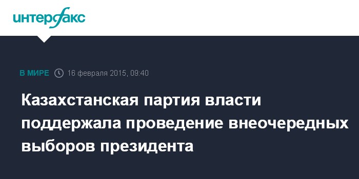 Москва. 16 февраля. INTERFAX.RU - Партия власти "Нур Отан" выступила в поддержку инициативы совета Ассамблеи народа Казахстана (АНК) о проведении внеочередных выборов президента республики.