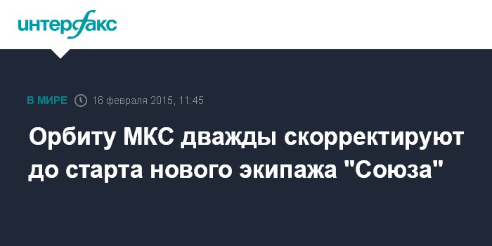 "Обе коррекции будут выполнены за счет двигателей грузового корабля "Прогресс М-26М", старт которого к МКС намечен на 17 февраля", - сообщил собеседник агентства.
