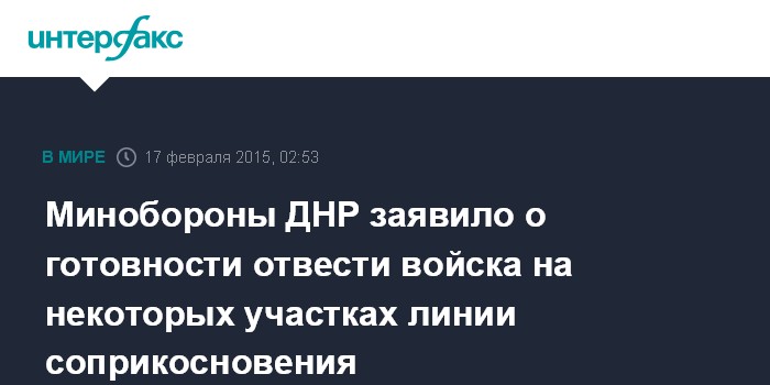 Минобороны ДНР заявило о готовности отвести войска на некоторых участках линии соприкосновения
