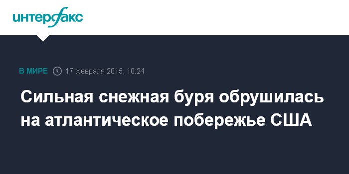 Москва. 17 февраля. INTERFAX.RU - Из-за мощной снежной бури, обрушившейся на центральную и восточную часть США, в нескольких штатах был введен режим чрезвычайной ситуации, сообщают во вторник местные СМИ.