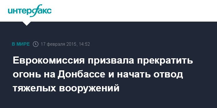 Москва. 17 февраля. INTERFAX.RU - Европейская комиссия заявляет, что обстрелы на востоке Украины должны прекратиться в соответствии с достигнутыми 12 февраля договоренностями о прекращении огня.