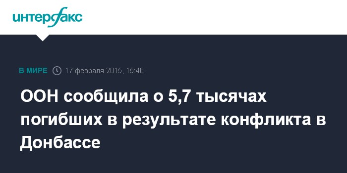 Москва. 17 февраля. INTERFAX.RU - По меньшей мере 5 тыс. 665 человек были убиты за последние десять месяцев в результате конфликта на юго-востоке Украины, сообщил во вторник на брифинге в Женеве официальный представитель Управления верховного комиссара ООН по делам беженцев Руперт Колвилл.