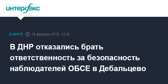 Москва. 18 февраля. INTERFAX.RU - В руководстве самопровозглашенной ДНР заявили, что не гарантируют безопасность наблюдателям миссии ОБСЕ в случае их поездки из подконтрольного Украине Соледара в Дебальцево.