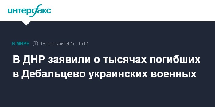 Москва. 18 февраля. INTERFAX.RU - В ходе операции ополченцев в городе Дебальцево уничтожены от двух до трех тысяч украинских военных, заявили "Интерфаксу" в военных структурах самопровозглашенной Донецкой Народной Республики.