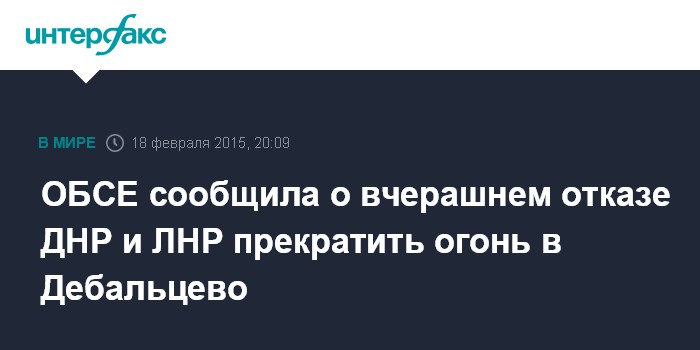 ОБСЕ сообщила о вчерашнем отказе ДНР и ЛНР прекратить огонь в Дебальцево