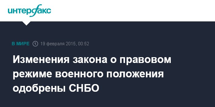 Москва. 19 февраля. INTERFAX.RU - Секретарь Совета национальной безопасности и обороны Александр Турчинов сообщил, что СНБО одобрил принятие изменений в закон о правовом режиме военного положения.