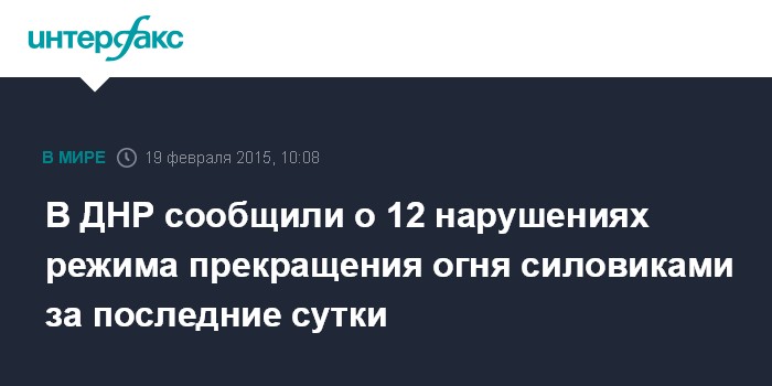 В ДНР сообщили о 12 нарушениях режима прекращения огня силовиками за последние сутки