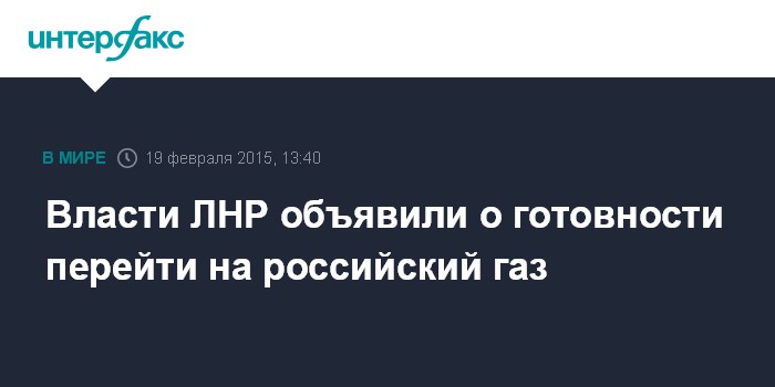 Москва. 19 февраля. INTERFAX.RU - В руководстве самопровозглашенной Луганской народной республики заявили об отсутствии альтернативы переходу на российский газ после того, как Киев отключил подачу газа в регион.