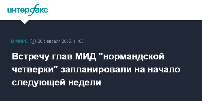 Москва. 20 февраля. INTERFAX.RU - Встреча министров иностранных дел государств "нормандской четверки" намечена на начало следующей недели, сообщил "Интерфаксу" в пятницу российский дипломатический источник.