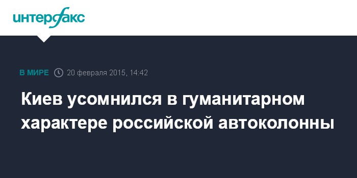 Москва. 20 февраля. INTERFAX.RU - В МИД Украины заявили, что очередной груз, доставленный автоколоннами МЧС РФ в Донбасс, не может считаться перемещенным законно из-за нарушения международных норм и требований украинского законодательства.