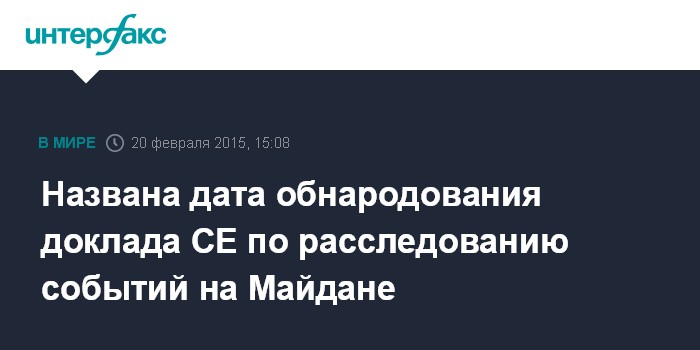 "Год назад произошли трагические события на майдане Независимости в Киеве, в результате чего многие люди были убиты и ранены. Международная консультативная группа Совета Европы, которой было поручено рассмотреть расследование насильственных инцидентов во время демонстраций на Майдане, представит свой доклад генеральному секретарю и украинским властям 31 марта 2015 года", - говорится в сообщении Совета Европы.