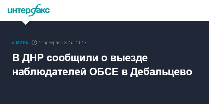 Москва. 21 февраля. INTERFAX.RU - Наблюдатели ОБСЕ направились в Дебальцево (Донецкая область), заявил в субботу "Интерфаксу" представитель Минобороны ДНР Эдуард Басурин.