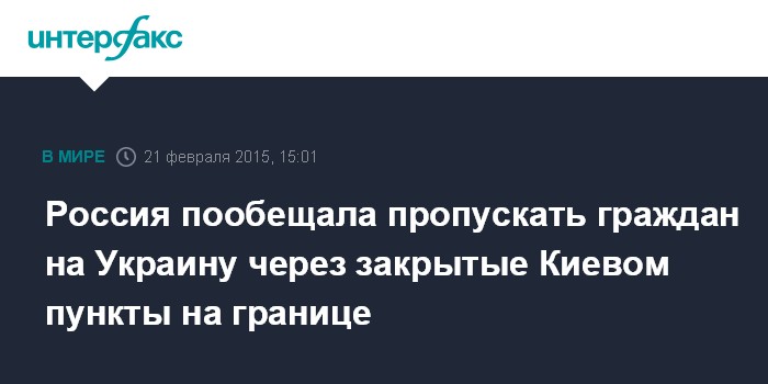 Москва. 21 февраля. INTERFAX.RU - В Москве вызывает недоумение распоряжение кабмина Украины о закрытии части пунктов пропуска на границе с Россией и заявляют об отсутствии планов принятия аналогичных мер со своей стороны.