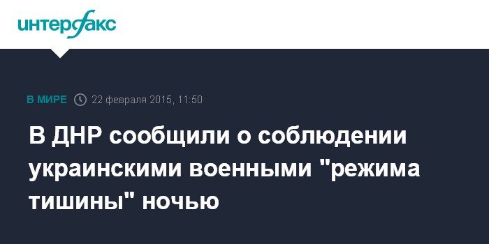Москва. 22 февраля. INTERFAX.RU - Обстрелов самопровозглашенной Донецкой народной республики со стороны украинских военных за минувшую ночь зафиксировано не было, сообщили в воскресенье в пресс-службе Минобороны ДНР.