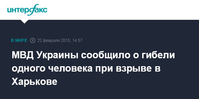 Москва. 22 февраля. INTERFAX.RU - В результате взрыва во время шествия в центре Харькова в воскресенье погиб один человек, сообщили "Интерфаксу-Украина" в пресс-службе министерства внутренних дел Украины.