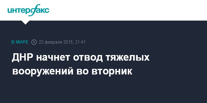 Москва. 22 февраля. INTERFAX.RU - В минобороны самопровозглашенной Донецкой народной республики (ДНР) заявляют о согласовании плана отвода тяжелых вооружений.