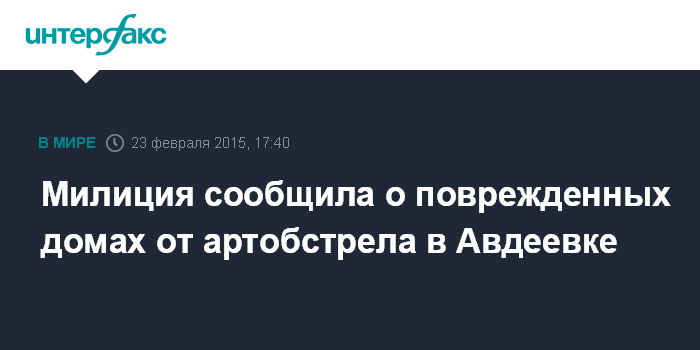 Москва. 23 февраля. INTERFAX.RU - В Авдеевке (Донецкая область Украины) от обстрелов разрушен ряд жилых домов и объектов инфраструктуры, сообщает пресс-служба ГУ МВД Украины в Донецкой области в понедельник.