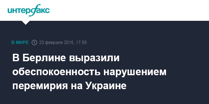Москва. 23 февраля. INTERFAX.RU - В правительстве Германии выразили озабоченность отсутствие на востоке Украины полноценного перемирия и призвали Россию повлиять на ополченцев.