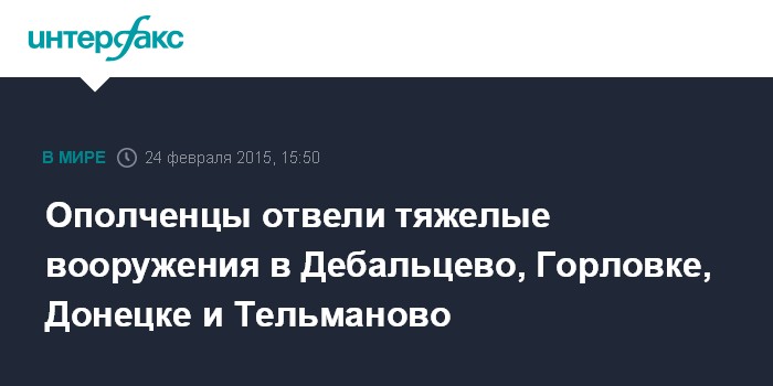 Москва. 24 февраля. INTERFAX.RU - В Минобороны самопровозглашенной Донецкой народной республики утверждают, что завершили отвод тяжелых вооружений от линий соприкосновения в намеченных на вторник населенных пунктах.