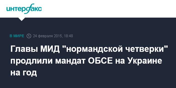 Москва. 24 февраля. INTERFAX.RU - Министры иностранных дел "нормандской четверки" согласовали решение о продлении мандата ОБСЕ на востоке Украины еще на один год, говорится в сообщении главы внешнеполитического ведомства ФРГ Франк-Вальтера Штайнмайера, опубликованном в твиттере.
