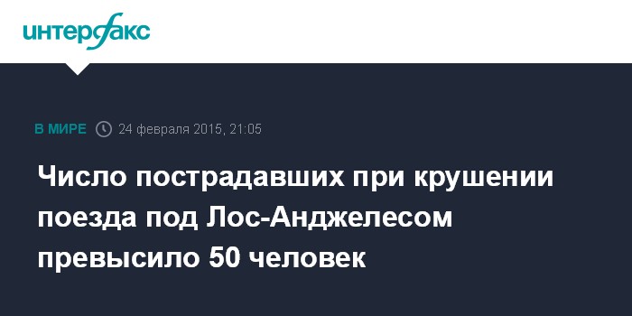 Москва. 24 февраля. INTERFAX.RU - По меньшей мере 51 человек пострадал в результате столкновения пригородного поезда с грузовым автомобилем в городе Окснард агломерации Большой Лос-Анджелес, сообщает телеканал Foxnews.