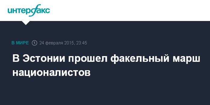 Москва. 24 февраля. INTERFAX.RU - В столице Эстонии прошло факельное шествие националистов, посвященное отмечаемой 24 февраля 97-й годовщине независимости государства.