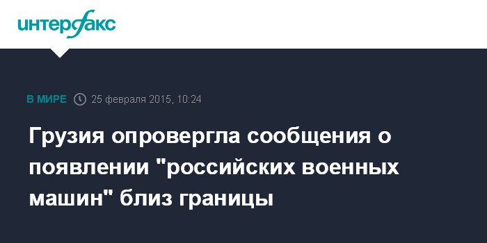 Москва. 25 февраля. INTERFAX.RU - Информация грузинских телеканалов, что накануне две "российские военные машины" связи пересекли грузино-российскую границу и направляются транзитом в Армению, не соответствует действительности, заявили в МВД Грузии.