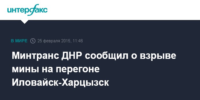 Москва. 25 февраля. INTERFAX.RU - Шесть работников Донецкой железной дороги получили ранения в результате взрыва мины, сообщило в среду министерство транспорта самопровозглашенной Донецкой народной республики.
