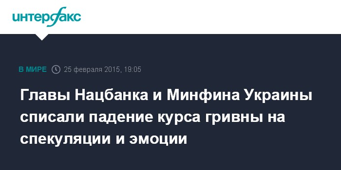 Москва. 25 февраля. INTERFAX.RU - Обвал курса гривны в последние дни не имеет фундаментальных причин и вызван действиями спекулянтов, а также паникой экономических игроков, считают глава Нацбанка Украины Валерия Гонтарева и министр финансов Наталия Яресько.