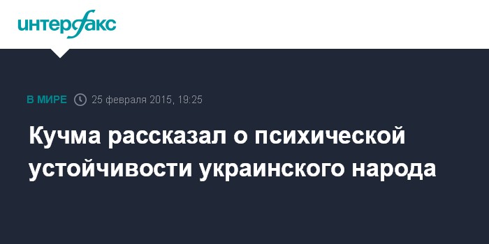 Москва. 25 февраля. INTERFAX.RU - Второй президент страны Леонид Кучма заявил, что на Украине "нет национального бреда". "Мы можем с гордостью сказать, что являемся психически устойчивым народом. Мы руководствуемся в жизни не сказками, не мифами, а фактами, реальностью, здравым смыслом. Мы не даем миру понять, что мы лучше всех, что у нас какие-то особые права и притязания. Украинцы - вменяемы, нормальны. Иными словами - современные европейцы. По нынешним временам это можно считать главным нашим достоянием", - сказал он в интервью газете "Голос Украины".