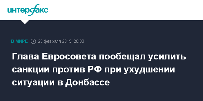 Глава Евросовета пообещал усилить санкции против РФ при ухудшении ситуации в Донбассе
