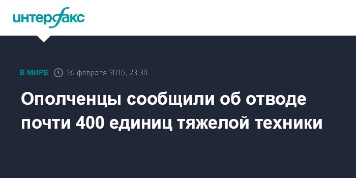Москва. 25 февраля. INTERFAX.RU Руководство ДНР и ЛНР сообщает об отводе с 22 февраля почти 400 единиц тяжелой техники от линии соприкосновения.