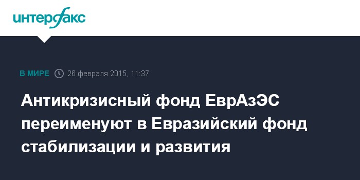 Антикризисный фонд ЕврАзЭС переименуют в Евразийский фонд стабилизации и развития