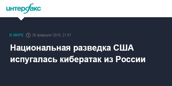 Москва. 26 февраля. INTERFAX.RU - Национальная разведка США фиксирует увеличение количества угроз для страны в сфере компьютерных технологий, сообщил руководитель этой спецслужбы Джеймс Клеппер, выступая в четверг на слушаниях в сенатском комитете по вооруженным силам. При этом самую большую угрозу представляют для США профильные спецслужбы из России, Китая, Ирана и КНДР, отметил Клеппер,