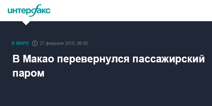 Москва. 27 февраля. INTERFAX.RU - В китайском городе Макао перевернулся пассажирский паром. Об этом сообщает "Синьхуа".